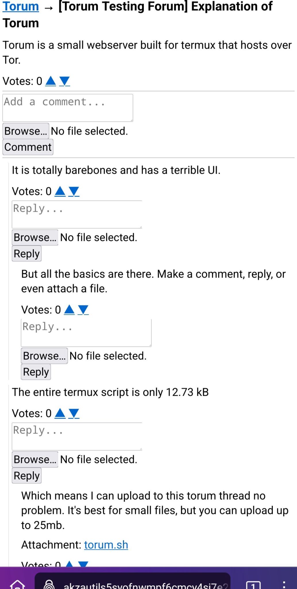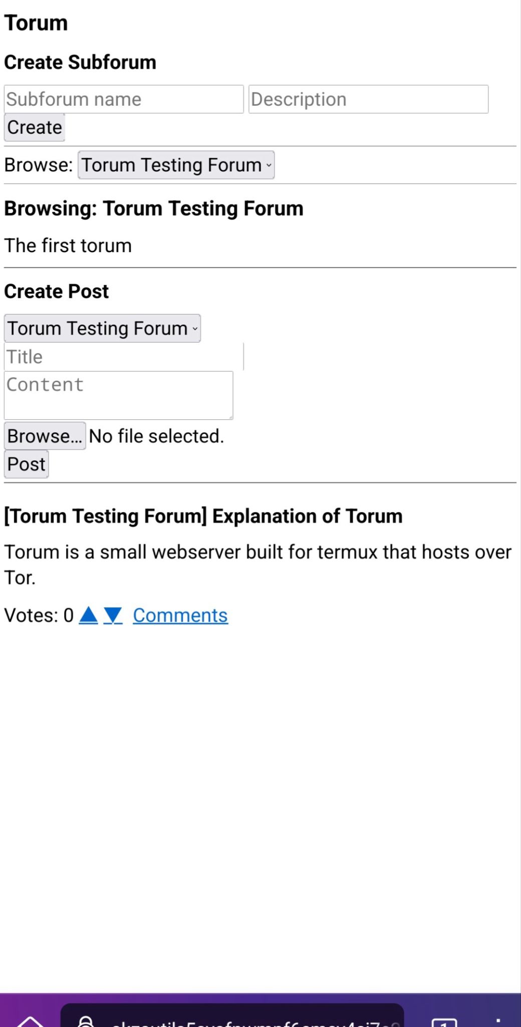 I present: Torum! A crappy yet functional bearbones selfhosted forum site for termux.